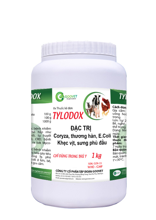 TYLODOX - Đặc trị coryza, thương hàn, E.coli, khẹc vịt, sưng phù đầu.