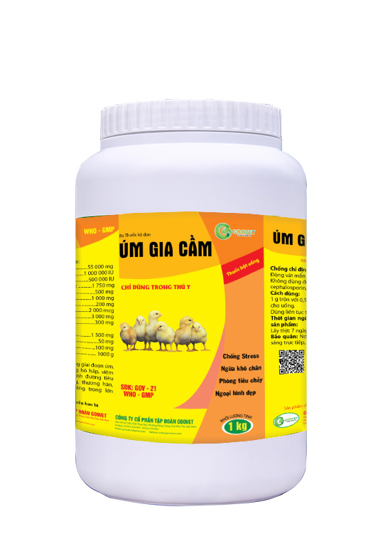 Úm gà, vịt, cút, ngan. Chống stress, ngừa khô chân, phòng tiêu chảy, ngoại hình đẹp.