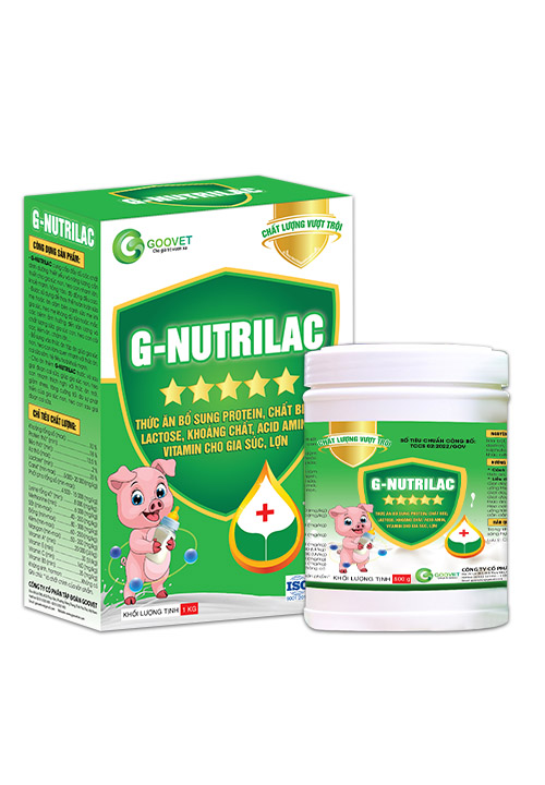 - G-NUTRILAC cung cấp đầy đủ các chất dinh dưỡng thiết yếu và năng lượng cần thiết cho gia súc non, heo con nhanh lớn, khoẻ mạnh, hồng hào, độ đồng đều cao.